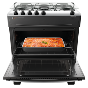 *Versão 5 bocas conta com 2 queimadores Semirrápidos de 1,67kW, 2 queimadores Rápidos de 2,0kW, 1 queimador Mega Chama de 3,0kW e forno com 86,5 litros de capacidade.