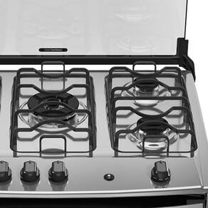 A versão 5 bocas conta com 2 queimadores Semirrápido de 1,7kW, 2 queimadores Rápido de 2,0kW, 1 queimador Tripla Chama de 3,3kW e forno com capacidade de 100 litros.