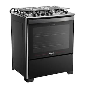A versão 5 bocas conta com 2 queimadores Semirrápido de 1,7kW, 2 queimadores Rápido de 2,0kW, 1 queimador Tripla Chama de 3,3kW e forno com capacidade de 100 litros.
