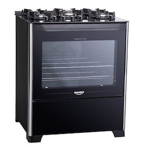 O Fogão 5 bocas Dako Magister Preto com Mesa de Vidro veio para inovar sua cozinha. Com manípulos removíveis e com nivelador de temperatura, trempes aneladas de 6 pontos, mesa top control, frente total glass, luz do forno e porta com vidro duplo. Possui 1 grade deslizante e 1 auto deslizante, além da mesa de vidro temperado e pés robustos.