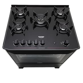 Características: Mesa de vidro Forno amplo, visor Manípulos removíveis Capacidade do forno de 60 litros 5 Bocas Não possui tampa Trempes individuais em ferro fundido com 6 pontos 2 Grades de forno