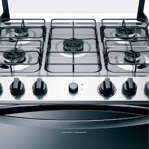 Caracteristicas: Modelo BFD5NCR Quantidade de bocas: 05 bocas Funcionamento: gas e eletrico Forno duplo Potencia dos queimadores: 1800 W Capacidade do forno: 39 L Consumo aproximado de energia: 1,6 kWh Prateleiras: 03 Acabamento da mesa: inox Tipo: piso Tipo de instalacao: piso Timer: nao possui Conveccao: nao Diferenciais: botoes removiveis, duplo forno Plugue e tomada: 20 A