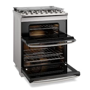 Diferenciais do fogão 5 bocas e 2 fornos Electrolux  Esse modelo de fogão conta com 2 fornos separados para possibilitar receitas diferentes ao mesmo tempo. Eles são equipados com cavidades seladas, que proporcionam menos perda de calor, resultando na maior acuracidade da temperatura e menos perda de gás, além de oferecem ampla visão, mesmo quando fechado. Assim, é possível ajustar a temperatura de forma individual para deixar cada prato no ponto certo e acompanhar todas as etapas da cocção.