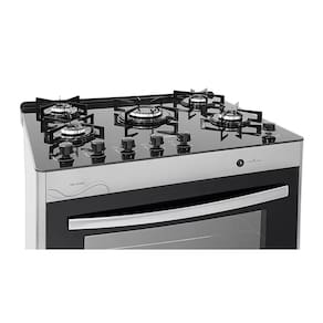 Com design super moderno, esse fogão conta com mesa de vidro temperado de alta qualidade e resistência, trempes individuais de ferro fundido robustas e duráveis com queimadores injetados. Além de tudo isso, os queimadores e forno contam com acendimento automático total.