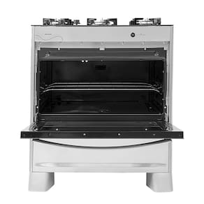 Diferenciais • Design super moderno • Mesa de vidro temperado: qualidade e alta resistência • Trempes de aço esmaltado brilhante com 6 pontos de apoio • Mais estabilidade para as panelas • Acendimento automático total na mesa e no forno • Queimadores de aço esmaltado • Capacidade do forno: 90L • Forno Fácil Limpeza: a gordura não gruda e fica mais fácil de limpar • Puxador em aço pintado na cor do fogão • Proteção térmica com vidro duplo no forno • Controle de temperatura do forno: 180°C a 280°C • Pés elevados que facilitam a limpeza do piso • Forno com válvula de segurança • Grade fixa com 3 níveis de ajuste no forno
