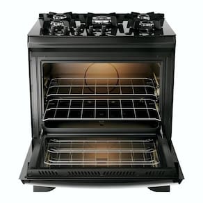Especificações Técnicas: Marca: Dako Modelo: 300001819 Voltagem: Bivolt Quantidade de Bocas: 05 Trempe em: Ferro Fundido Prateleiras do Forno: 100 Litros Quantidade de Prateleiras do Forno: 02