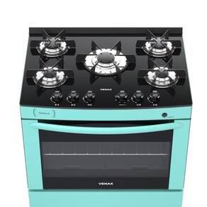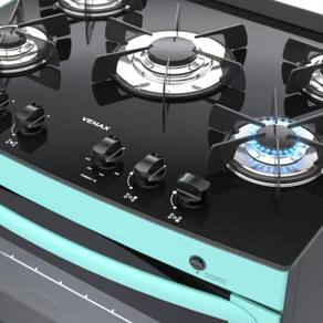 Tipo: Fogão de Piso Acendimento: Automático Queimadores: 3 Grandes e 2 Médios Trempe dos Queimadores: Individual Esmaltada Mesa Queimadores: Vidro Preto Base das Trempes: Inox Botões: Removíveis Válvula de Segurança: Sim Luz no Forno: Não Prateleiras do Forno: Uma Regulável Revestimento do Forno: Esmalte Easy Clean Temperatura: 5 posições de 180C Até 290C Função Grill: Não Timer Grill: Não Timer Gás: Não Espeto Giratório: Não Bandeja Coletora de Resíduos: Não Porta Removível: Sim Porta do forno: Vidro Preto Vidro Duplo na Porta: Sim Puxador da Porta: Aço Pintado na Cor do Produto Estufa: Fixa Puxador da Estufa: N/A Entrada de Gás: Uma Entrada(Lado Esquerdo Visto de Frente) Cores das Laterais: Preto Fosco Marca: Venax