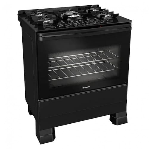 Cozinhar a vontade, ter facilidade na limpeza e ainda deixar sua cozinha muito mais moderna é aqui! O Fogão Mueller MFV5BF, possui 5 bocas com acendimento automático. São 2 queimadores família, 1 queimador tripla chama e outros 2 queimadores médios. A mesa de vidro temperado é pura elegância com grades de ferro fundido e botões removíveis.