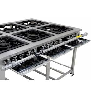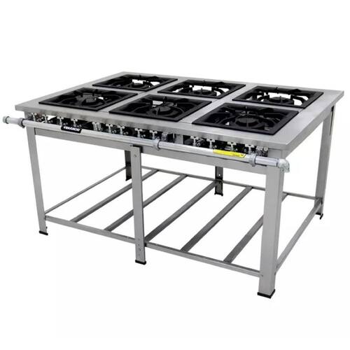 Características Técnicas: O produto vem de fábrica regulado a gás GLP baixa pressão Tipo de instalação de pé (para panela) Espaço suficiente para acomodar panelas Quantidade de queimadores: 6 bocas com perfil de 10cm Queimadores Duplos: 6 Medidas dos queimadores LxP: 40x40cm Queimadores em ferro fundido de alto rendimento, possuindo potência de 3.021 kcal/h no modelo simples e 5.586 kcal/h no modelo duplo Estrutura totalmente em aço inoxidável, grelha 40x40cm em ferro fundido e mesa com perfil de 10cm Tubo distribuidor (varão) de 2"" com acabamento cromado, possuindo tampão e entrada de gás reversível Bandeja coletora em aço inoxidável Este produto será entregue desmontado ** Marca: Não Informado