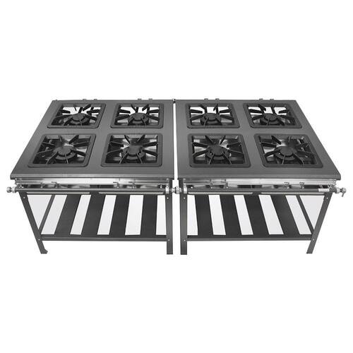 O Fogão Industrial 8 Bocas Extra é fabricado para atender grandes restaurantes e cozinhas industriais, os mesmos tem uma estrutura robusta e uma distância maior entre as grelhas para suportar panelas de porte grande.