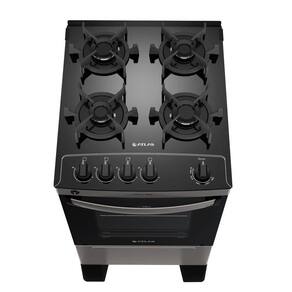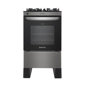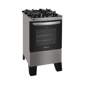 Características: Modelo: Agile Up Tipo de fogão: Piso Bocas: 04 Acendimento: Automático Queimadores: 2 Queimadores de 1,7 kW e 2 Queimadores Família de 2,0 kW Iluminação interna: Sim Mesa: De vidro Trempes: Ferro fundido Grill: Não Forno: Com acabamento Limpa Fácil Capacidade do forno: 50 litros Temperatura máxima do forno:290ºC Temperatura mínima do forno:190ºC Puxadores: Alumínio escovado Timer: Não Grade: 2 deslizantes Vidro interno: Removível