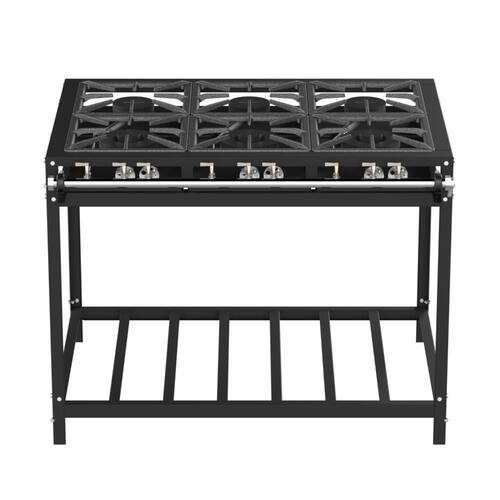 Tipo: Fogão industrial Marca: Venax Acendimento: Manual Queimadores: 3 Queimadores duplos(150mm) 3 Queimadores simples(120mm) Espalha chama: Ferro fundido Trempe dos queimadores: Ferro fundido(300x300mm) Mesa dos queimadores: Aço revestido com pintura eletrostática Perfil da mesa: Estilo "U" (60mm) Bandeja coletora de resíduos: Sim Botões: Metálicos Forno: Não Estrutura do fogão: Aço revestido com pintura eletrostática Entrada de gás: Dupla(reversível) Medidas do produto: Altura 84cm - Largura 107cm - Profundidade 84cm