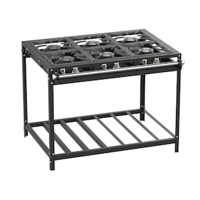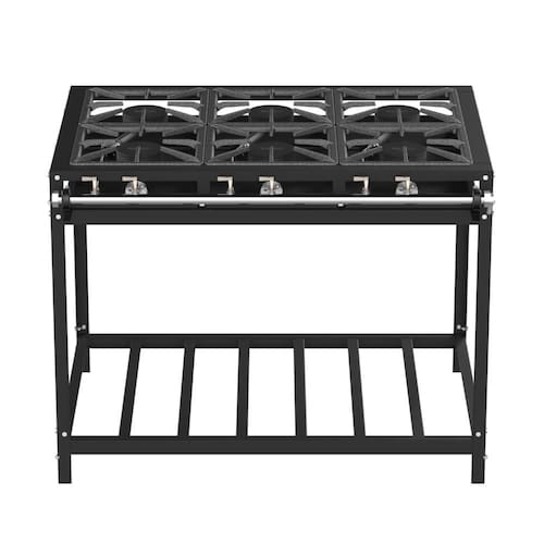 Tipo: Fogão industrial Marca: Venax Acendimento: Manual Queimadores: 6 Queimadores simples(120mm) Espalha chama: Ferro fundido Trempe dos queimadores: Ferro fundido(300x300mm) Mesa dos queimadores: Aço revestido com pintura eletrostática Perfil da mesa: Estilo "U" (60mm) Bandeja coletora de resíduos: Sim Botões: Metálicos Forno: Não Estrutura do fogão: Aço revestido com pintura eletrostática Entrada de gás: Dupla(reversível) Medidas do produto: Altura 84cm - Largura 107cm - Profundidade 84cm