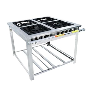 - Queimadores simples (120 mm de diâmetro) ou duplos (180 mm - com controle individual das chamas) em ferro fundido;