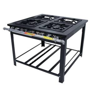 - Gás GLP baixa pressão; - Tudo distribuidor (varão) de 1" com acabamento cromado, possuindo tampão e entrada de gás reversível; - Queimadores simples (120mm de diâmetro) e duplos (180mm - com controle individual das chamas) em ferro fundido, fixos por encaixe; - Queimadores de alto rendimento, possuindo potência de 3.021 kcal/h no modelo simples e 5.586 kcal/h no modelo duplo; - Totalmente desmontável, facilitando o transporte e armazenagem; - Corpo e mesa de aço carbono super resistente, com acabamento em pintura pó eletrostática, com base fosfatizada, grelha de ferro fundido de 40x40cm e mesa com perfil 10cm; - Todos os fogões, a partir de 2 queimadores, são produzidos com tampão para posterior colocação do forno; - Registro cromado 1/4"; - Bandeja coletora em aço galvanizado; - Limpeza e manutenção facilitadas, pois os queimadores são encaixados, facilitando a remoção; - Equipamento para uso industrial e profissional.