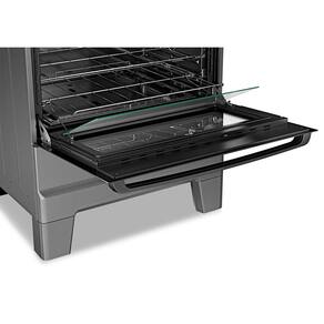 O forno Limpa Fácil com 84 litros de capacidade acomoda grandes receitas com facilidade e vem equipado com porta Full Glass, vidro interno removível, grade deslizante e grade autodeslizante, entregando praticidade no manuseio dos assados.