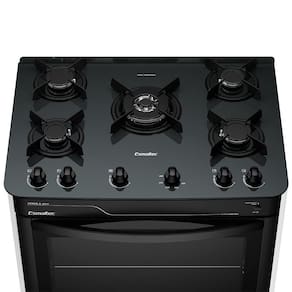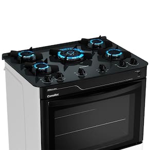 Quantidade de Bocas: 5 | Produto: Fogão | Alimentação: A gás | Mesa: Vidro | Acendimento automático: Sim | Voltagem: Bivolt | Cor: Branco | Tipo: De piso