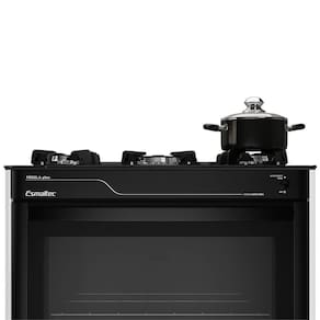 O modelo conta com queimador Tripla Chama, que acelera o preparo dos alimentos ao distribuir o calor de forma mais eficiente.
