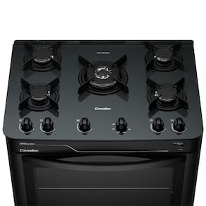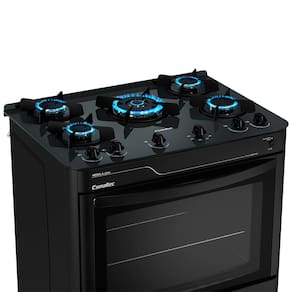 O Fogão Esmaltec Pérola Glass 5 bocas preto é ideal para quem precisa de mais potência, espaço e praticidade na cozinha.