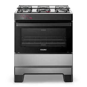 Trempes duplas com mais apoios: estabilidade reforçada para as panelas. Forno Limpa Fácil com 84 litros de capacidade: mais espaço para grandes receitas.