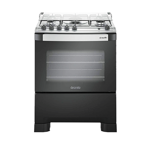 O Fogão Mueller Decorato 5 Bocas é a combinação perfeita de design moderno, funcionalidade e potência na cozinha. Seu acabamento em preto fosco com mesa de Inox traz elegância e resistência, sendo fácil de limpar e ideal para quem busca um toque premium no ambiente.