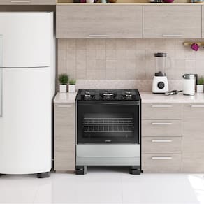 Com cinco queimadores, incluindo chama tripla, oferece potência ideal para preparar desde refeições rápidas até pratos elaborados. O acendimento automático e os botões removíveis proporcionam mais praticidade e segurança no uso diário.