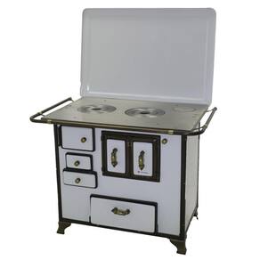 O Fogão a Lenha Barroco Número 03 de Gabinete conta com corpo e forno totalmente em aço carbono com acabamento esmaltado a fogo na pintura Branca. Seus pés são em ferro fundido com acabamento em ouro envelhecido no modelo rústico, conta também com varões em tudo de aço e guarnições em ferro fundido também com acabamento em ouro envelhecido garantindo qualidade exclusiva e um ótimo acabamento no seu Fogão a Lenha.