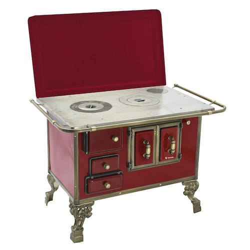 O Fogão a Lenha 03 da Linha Barroco conta com corpo e forno totalmente em aço carbono com acabamento esmaltado a fogo na pintura Vermelha. Seus pés são em ferro fundido com acabamento em ouro envelhecido, contando também com varões em tubo de aço e guarnições em ferro fundido também com acabamento em ouro envelhecido garantindo qualidade exclusiva e um ótimo acabamento no seu Fogão a Lenha.