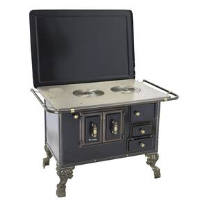 O Fogão a Lenha 03 da Linha Barroco conta com corpo e forno totalmente em aço carbono com acabamento esmaltado a fogo na pintura Preta. Seus pés são em ferro fundido com acabamento em ouro envelhecido, contando também com varões em tubo de aço e guarnições em ferro fundido também com acabamento em ouro envelhecido garantindo qualidade exclusiva e um ótimo acabamento no seu Fogão a Lenha.