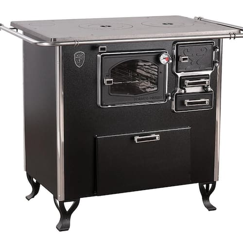 Forno: Aço inox | Tinta acabamento: Tinta alta temperatura 250C nas portas, parte de trás e pés; | isolamento térmico: Frente e laterais revestidas com isolamento térmico | Ferro fundido: Nas portas do fogo, forno e pés | Cor: Preto | Fabricante: Formos Pinhal | É kit: Não | Voltagem: Sem voltagem | Selecione: 0 | Peso do Produto: 98 | Produto: Fogão a Lenha | Altura: 87 | Largura: 104
