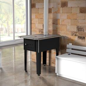 Fogão a lenha com chapa de ferro fundido, ideal para quem busca tradição e qualidade na cozinha. Possui pés com regulagem de altura e saída de cano de 11,5 cm.Tipo