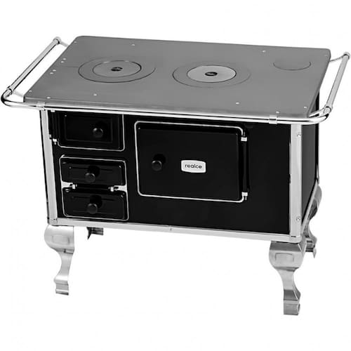Características: Marca: Realce Modelo: 1806 Tipo: Fogão a lenha Aquecimento: A lenha Termômetro: Não Pés: Sim Rodízios: Não