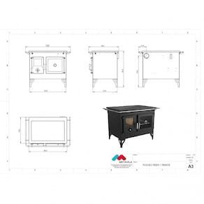 Características Gerais do produto Fogão à lenha dupla cometrosbustão, aquece 245metros³, fabricado emetros aço carbono, porta de vidro cerâmetrosico, chapa de vidro cerâmetrosico, divisória emetros aço inox de 47L.