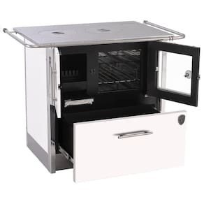 Fogão A Lenha Ecli Branco C/ For C/cx Dir Chapa Al. N2 FOGÃO A LENHA ECLI BRANCO C/ FOR C/CX DIR CHAPA AL. N2 CARACTERÍSTICAS Acabamento em tinta epóxi preta de alta temperatura 250C; Frente e laterais revestidas com isolamento térmico; Chapa do fogão em Aluminio; Forno em aço inox; Grade do forno em inox; Portas do fogão e do fogo em aço carbono; Grade do fogo em ferro fundido; Com caixa de lenha; Puxadores de inox; Mexedor de brasa em Inox; Termômetro; Saída do cano N ; DIMENSÕES DO FOGÃO Altura 82 cm Largura com varão: 104 cm Profundidade com varão 70 cm Peso aproximado: 106 Kg DIMENSÕES DO FORNINHO Altura 24 cm Largura 29 cm Profundidade 47 cm DIMENSÕES DA CHAPA (ALUMINIO) ; Profundidade: 62cmLargura: 89 cm Espessura: 1,8 cm ; Peso aproximado: 26 Kg ; DIMENSÕES INTERNAS DA CAIXA DE LENHA Altura: 20 cm Largura: 64 cm Profundidade: 48 cm ; Capacidade máxima: 22 Kg ; 61,5 LITROS Informações Importantes: - Os objetos que ambientam as imagens, não acompanham o produto. - Fique atento: As cores das imagens podem sofrer alterações devido a luminosidade, configurações do monitor e até mesmo a percepção do usuário. ; ;