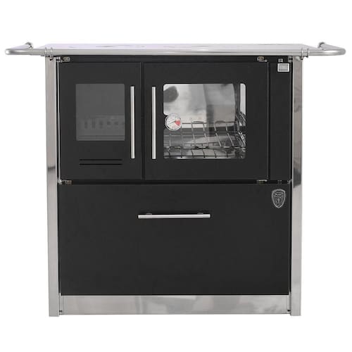 Fogão A Lenha Eclipse Direito Preto Chapa Aluminio N2 FOGÃO A LENHA ECLIPSE DIREITO PRETO CHAPA ;ALUMINIO N2 Acabamento em tinta epóxi preta de alta temperatura 250C; Frente e laterais revestidas com isolamento térmico; Chapa do fogão em Aluminio; Forno em aço inox; Grade do forno em inox; Portas do fogão e do fogo em aço carbono; Grade do fogo em ferro fundido; Com caixa de lenha; Puxadores de inox; Mexedor de brasa em Inox; Termômetro; Saída do cano N ; DIMENSÕES DO FOGÃO Altura 82 cm Largura com varão: 104 cm Profundidade com varão 70 cm ; Peso aproximado: 106 Kg DIMENSÕES DO FORNINHO Altura 24 cm Largura 29 cm Profundidade 47 cm ; DIMENSÕES DA CHAPA (ALUMINIO) Profundidade: 62cmLargura: 89 cm Espessura: 1,8 cm ; Peso aproximado: 26 Kg ; DIMENSÕES INTERNAS DA CAIXA DE LENHA ; Altura: 20 cm Largura: 64 cm Profundidade: 48 cm ; Capacidade máxima: 22 Kg61,5 LITROS Informações Importantes: - Os objetos que ambientam as imagens, não acompanham o produto. - Fique atento: As cores das imagens podem sofrer alterações devido a luminosidade, configurações do monitor e até mesmo a percepção do usuário. ; ;