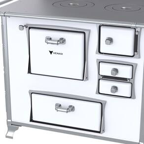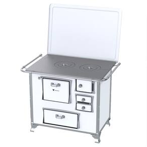 Características: Fogão a Lenha N 2 Gabinete, Chapa de Ferro Fundido Polida, Tampa com Pintura Epoxi, Varão de Proteção Cromado, Puxadores em Zamak, Suportes de Varões em Inox, Fornalhas de Tijolos, Grande do Fogo em Ferro Fundido, Cantoneiras em Inox, Com Estufa, Guarnições das Portas e Pés em Alumínio Polido, Corpo e Forno Esmaltado.