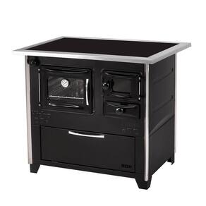 O Fogão a Lenha Hidro Prime Vitro N2 Preto Lado Esquerdo VITREO LE é um produto de alta qualidade que pode ser utilizado em diversos estabelecimentos, como restaurantes, pousadas e até mesmo em sua casa. Este fogão a lenha é ideal para o preparo de diversos alimentos, desde um simples arroz até pratos mais elaborados. Ele possui um forno esmaltado com volume de 40 litros, perfeito para assar pães e bolos. A fornalha, com seu volume de 22 litros é a câmara onde a lenha é queimada, gerando o calor necessário para assar os alimentos.A saída da chaminé dupla oferece maior praticidade na instalação e o registro para regulagem do ar possibilita maior controle da temperatura do forno. Um dos grandes benefícios deste fogão é sua durabilidade, graças ao fundo e à parte traseira em aço inox. Além disso, ele possui isolamento em lã de rocha, que evita excesso de calor na lateral externa da fornalha, proporcionando maior segurança durante o uso. Outro benefício é o termômetro, que permite acompanhar de forma precisa a temperatura interna do forno.