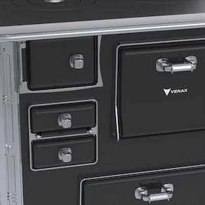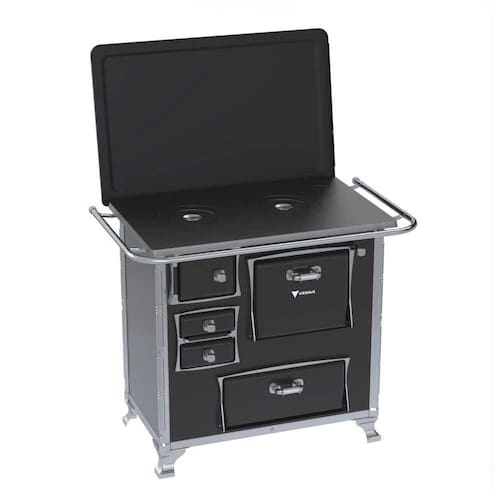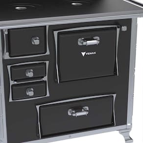 - Tipo: Fogão a Lenha; - Chapa: Ferro Fundido Polido; - Varão de proteção: Tubo de Aço Cromado; - Suporte Varão de proteção: Inox; - Caldeira: Não; - Fornalha: Tijolos Pré-Moldados; - Porta da Fornalha: Aço Esmaltado; - Tranca na Porta da Fornalha: Não; - Porta de Ar: Aço Esmaltado; - Gaveta de Cinzas: Sim; - Porta de Gaveta de Cinzas: Aço Esmaltado; - Forno: Sim; - Porta do Forno: Aço Esmaltado; - Prateleira do Forno: 1 Regulável; - Estufa: Sim; - Porta da Estufa: Aço Esmaltado; - Base Armazenamento de Lenha: Não; - Cantoneiras: Inox; - Guarnições da Porta: Cromadas; - Puxadores: Cromadas; - Tampa: Sim; - Pés: Cromados; - Acessórios: Pá e Gancho para Manuseio; - Saída da Chaminé: Saída à Direita na chapa e costas (Olhando de Frente); - Revestimento Corpo do Produto: Esmalte; - Serigrafia: Não; - Serpentina: Não; - Marca: Venax; - Garantia: 1 Ano.