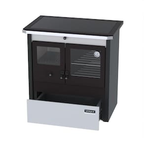 Tipo: Fogão a lenha Chapa: Vidro Vitrocerâmico com moldura Revistada na Cor Preta Dupla Combustão: Sim Varão de proteção: Frontal de alumínio escovado Suporte do varão de proteção: Aço 3mm pintado em preto Fornalha: Tijolos refratários pré-moldados Porta da fornalha: Vidro Vitrocerâmico Tranca da porta da fornalha: Sim Porta do ar: Esmaltada Gaveta de cinzas: esmaltada Forno: Sim Porta do forno: Vidro Vitrocerâmico Prateleiras do forno: 2 removíveis Guarnições das portas: Chapa de aço Puxadores: Baquelite na cor preta Pés: 4 pés reguláveis Acessórios: Pé e gancho para manuseio Saída da chaminé: Central traseira Revestimento corpo do produto: Pintura eletrostática Termômetro no forno: Sim