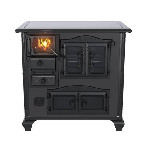 Tipo: Fogão a Lenha Chapa: Vidro Vitrocerâmico com moldura esmaltada Caldeira: Não Fornalha: Tijolos Pré-Moldados Porta da Fornalha: Vidro Vitrocerâmico com Moldura em Ferro Fundido Pintado Tranca na Porta da Fornalha: Sim Porta de Ar: Ferro Fundido Pintado Gaveta de Cinzas: Sim Porta de Gaveta de Cinzas: Ferro Fundido Pintado Forno: Sim Porta do Forno: Dupla com Vidro Vitrocerâmico e Moldura com Acabamento em Onix Prateleira do Forno: 1 Regulável Estufa: Sim Porta da Estufa: Dupla com Vidro Vitrocerâmico e Moldura com Acabamento em Onix Base Armazenamento de Lenha: Não Cantoneiras: Ferro Fundido com Acabamento em Onix Guarnições da Porta: Design Séc. XV acabamento em Onix Puxadores: Design Séc. XV acabamento em Onix Tampa: Não Pés: Design Séc. XV acabamento em Onix Acessórios: Pá e Gancho para Manuseio Saída da Chaminé: Saida a Direita ou Esquerda, nas Costas(visto de frente) (selecione na hora da compra) Revestimento Corpo do Produto: Esmalte Serigrafia: Não Serpentina: Não Marca: Venax