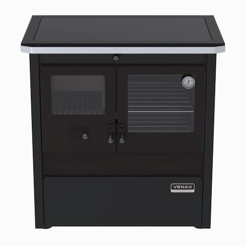 Tipo: Fogão a lenha Chapa: Vidro Vitrocerâmico com moldura Revistada na Cor Preta Dupla Combustão: Sim Varão de proteção: Frontal de alumínio escovado Suporte do varão de proteção: Aço 3mm pintado em preto Fornalha: Tijolos refratários pré-moldados Porta da fornalha: Vidro Vitrocerâmico Tranca da porta da fornalha: Sim Porta do ar: Esmaltada Gaveta de cinzas: esmaltada Estufa: Sim Forno: Sim Porta do forno: Vidro Vitrocerâmico Prateleiras do forno: 2 removíveis Guarnições das portas: Chapa de aço Puxadores: Baquelite na cor preta Pés: 4 pés reguláveis Acessórios: Pé e gancho para manuseio Saída da chaminé: Central traseira Revestimento corpo do produto: Pintura eletrostática Termômetro no forno: Sim