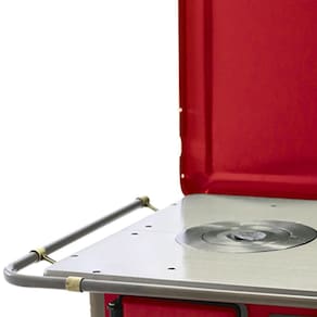 Chapa em ferro fundido com super polimento e maior dimensão; Pés em ferro fundido modelo rústico com acabamento em ouro envelhecido; Corpo e forno do fogão totalmente em aço carbono com acabamento esmaltado; Puxador e escoras do varão em Zamak com acabamento em ouro envelhecido; Varões em tubo de aço com acabamento em ouro envelhecido; Guarnições em ferro fundido com acabamento em ouro envelhecido; Modelo acompanha tampa; Forno com sistema de abertura de porta dupla; Modelo com conceito de antiguidade; Possui compartimento inferior para armazenagem da lenha, mantendo-a seca.Tipo