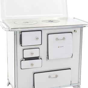 O Fogão a Lenha Número 02 Gabinete modelo Tradicional conta com corpo e forno totalmente em aço carbono com acabamento esmaltado a fogo na pintura Branca. Seus pés são em ferro fundido com pintura em alumínio, contando também com cantoneiras em aço inox e guarnições em ferro fundido cromado garantindo qualidade exclusiva e um ótimo acabamento no seu Fogão a Lenha.