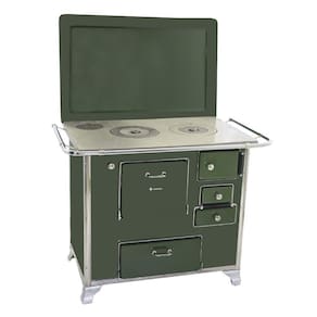 Fogão a Lenha Número 02 Verde com Compartimento para Lenha e Tampa