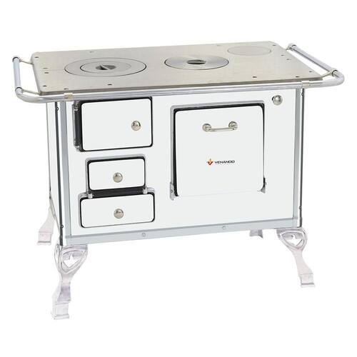 O Fogão a Lenha 01 conta com corpo e forno totalmente em aço carbono com acabamento esmaltado a fogo na pintura Branca. Seus pés são em ferro fundido com pintura em alumínio, contando também com cantoneiras em aço inox e guarnições em ferro fundido cromado garantindo qualidade exclusiva e um ótimo acabamento no seu Fogão a Lenha.