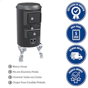 - Fogão a Lenha Venax Salamandra 80 Tradição, charme e eficiência em um só produto! - Com corpo esmaltado de alta durabilidade e saída de fumaça traseira, ele alia o estilo rústico ao desempenho moderno. - Ideal para quem valoriza conforto térmico, economia e aquele sabor inconfundível da comida feita no fogão a lenha. - Aproveite agora e transforme sua casa em um verdadeiro lar acolhedor!