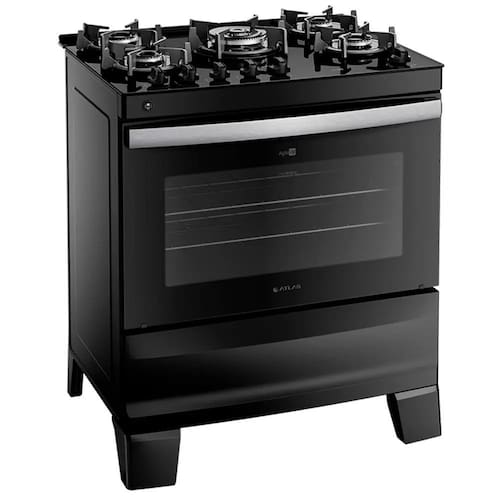 Características: Fogão Marca: Atlas Modelo: Agile Up Tipo de Fogão: Piso Quantidade de bocas: 05 Bocas Tipo d Acendimento: Automático Material da mesa: Vidro temperado Tipo de queimadores: Tripla chama, Rápido e Semirrápido Material das trempes: Ferro fundido Manípulos removíveis: Sim Capacidade do forno: 86,5 Litros Quantidade de Prateleiras do forno: 02 Tipo de Prateleiras: Deslizantes Possui Luz no forno: Sim Acabamento do forno: Limpa fácil Pés: Sim Eficiência energética: A Potência dos queimadores: Tripla chama: 3,3 kW, Rápido: 2 kW e Semirrápido: 1,67 kW Frequência: 60Hz Inmetro: Sim Tampa de vidro: Não Timer: Não Grill: Não Relógio: Não Termostato: Não Bandeja coletora de resíduos: Não Forno duplo: Não Forno Autolimpante: Não