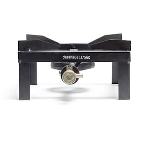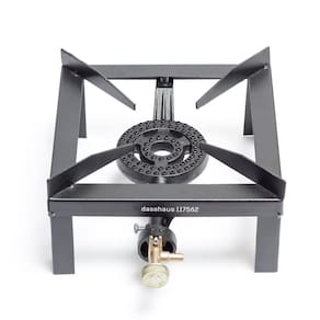 Fogão de alta pressão 1b queimador de ferro fundido Ideal para elaboração de cerveja artesanal. Fogão industrial dasshaus feito com ferro fundido 01 boca mesa na cor preta Sua cozinha industrial ou comercial ficará com muito mais qualidade com o fogão ferro fundido dasshaus Ele conta com dois queimadores simples em ferro fundido. Produzido em material resistente e pintura preta texturizada epóxi de alta resistência, é a peça fundamental para o desenvolvimento de uma refeição com qualidade. Ótimo para levar para seus passeios em família: Informações básicas Tipo: fogão industrial Modelo: 01 boca Cor: preto texturizado Características Estrutura: produzido com chapa de ferro, registro simples, grelhas em ferro fundido embutidas direto no fogão e trempes em ferro fundido Tipo de fogão: industrial Quantidade de bocas: 01 boca Tipo de chama: simples Tipo de queimadores: 01 - queimador simples Tipo de acendimento: manual Recursos: pintura preta de alta resistência ao calor, Pés: sim, porém usado em alguma bancada; Alimentação: gás Medidas aproximadas Largura do fogão: 24 cm Comprimento(com registro): 31 cm Altura do fogão: 13 cm Peso: 1,510kg