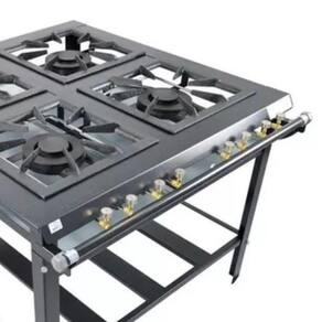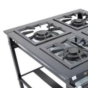 Com um perfil de 8 cm, este fogão se destaca pela sua robustez e estabilidade durante o uso. Suas dimensões generosas - 100 cm de comprimento, 118 cm de profundidade e 80 cm de altura - garantem uma presença imponente em qualquer cozinha comercial.