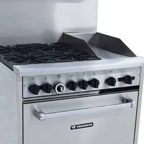 O Fogão Americano Baixa Pressão é ideal para sua cozinha industrial! Esse fogão conta com queimadores em ferro fundido de excelente rendimento com potência de 4.001 kcal, controle individual dos queimadores e fácil acendimento através de chama piloto ao lado de cada queimador suas grelhas são removíveis em monobloco de ferro fundido com 8 pontas na parte superior e arredondado na parte inferior possibilitando um melhor aproveitamento do calor.